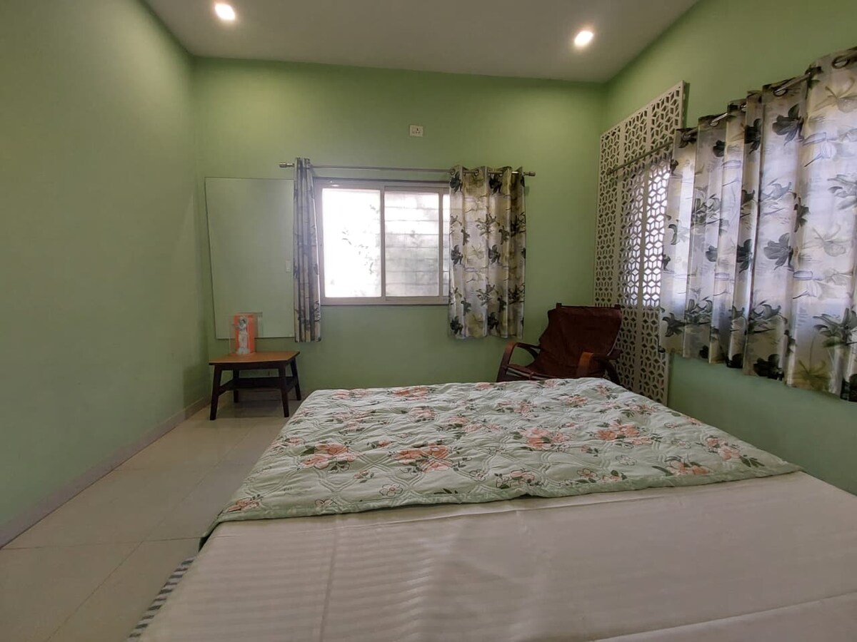 Průměrné hodnocení 5 z 5, 6 hodnoceníBungalov Shrishailya, klimatizace, 2 pokoje a kuchyň, parkování pro 2 SUV ZDARMA