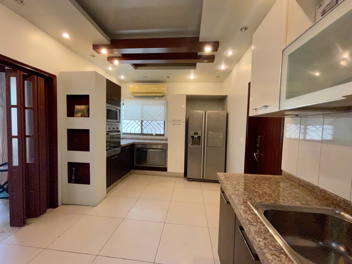 VÍTEJTE v A Luxury Residence, elegantním nově postaveném bungalovu v klidné a prestižní čtvrti v nejlepší lokalitě DHA Karáčí — pouze 30 minut od mezinárodního letiště Jinnah a pouhých 10 minut od Dolmen Mall Clifton a Sea View Beach. Tento dvoupatrový bungalov nabízí pohodlné a stylové ubytování až pro 8 hostů se 4 ložnicemi s vlastní koupelnou, z nichž každá je vybavena moderním vybavením, které zajistí luxusní a nezapomenutelný pobyt. Přijímáme pouze rezervace od rodin.