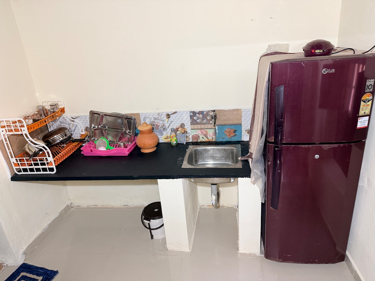 „V našem domku A s výhledem na pláž budeš mít klimatizovanou ložnici s připojenou koupelnou a toaletou. Součástí chalupy je také soukromá veranda, která je ideální k odpočinku. K dispozici je samostatná kuchyň a budete mít přístup i k dalším zařízením na pozemku nemovitosti. Pamatujte: Hosté mohou používat kuchyň, ale za používání plynového sporáku se účtuje příplatek 500 ₹ za pobyt na úklid a údržbu. Tento poplatek se účtuje pouze v případě, že je kamna používána. Pokud není používána, poplatek se neúčtuje.“