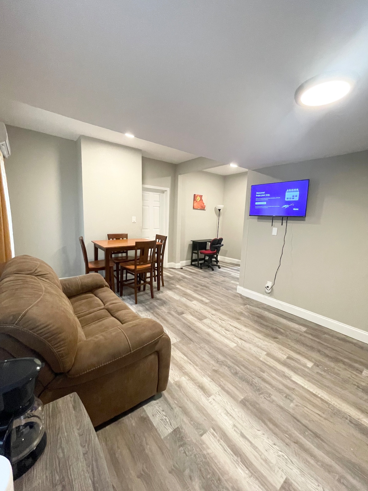 „Vítej v tomto okouzlujícím bytě v srdci Brandonu, který je ideální pro páry nebo sólo cestovatele, kteří hledají klidný a pohodlný pobyt. Prostor je vybaven prostorným pokojem s manželskou postelí velikosti Queen, měkkým ložním prádlem a šatní skříní. Koupelna je soukromá, moderní a pro větší pohodlí je v ní čisté ručníky, mýdlo a fén. Kuchyně je plně vybavena všemi nezbytnými spotřebiči. Přijď a užij si to!“