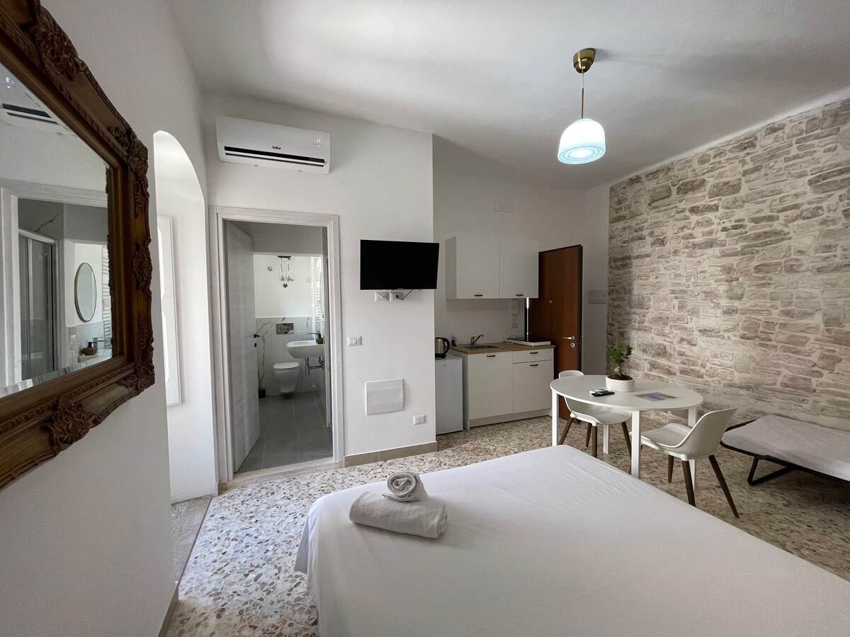 Nachází se ve starobylém Corte Forno Sant'Orsola, kamenné studio, plně vybavené, je jen co by kamenem dohodil od moře a veřejné pláže. Přímo v srdci historického centra, kde kdysi stála starobylá společná pekárna, se ponoříš do jedinečného zážitku obklopeného kamenem, historií a mořem, ztrácíš se v úzkých bílých uličkách a dýcháš v typickém vzduchu Apulských historických center. Tato oblast je pulzující, ale klidná, plná restaurací a barů.