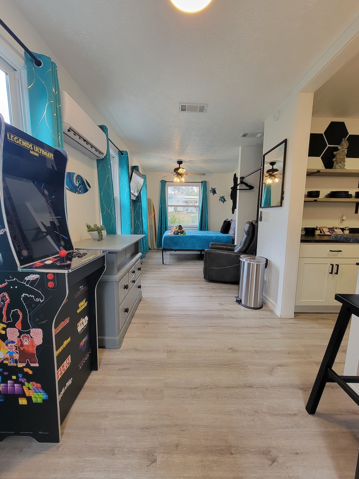 Welcome to your perfect escape on the east end of Panama City Beach -arguably the best end! This charming one-bedroom In-Law Suite is just a 2 minutes walk from the beach, directly across from Rick Seltzer Park, which offers beach access, lifeguards, showerers, and more. Na obou stranách nemovitosti najdeš dvě oblíbené místní restaurace-Finns Barista Bar & Snack Shack a Liza's Kitchen. Jsi také jen pár minut od zábavných aktivit, jako jsou motokáry, minigolf a živá hudba!