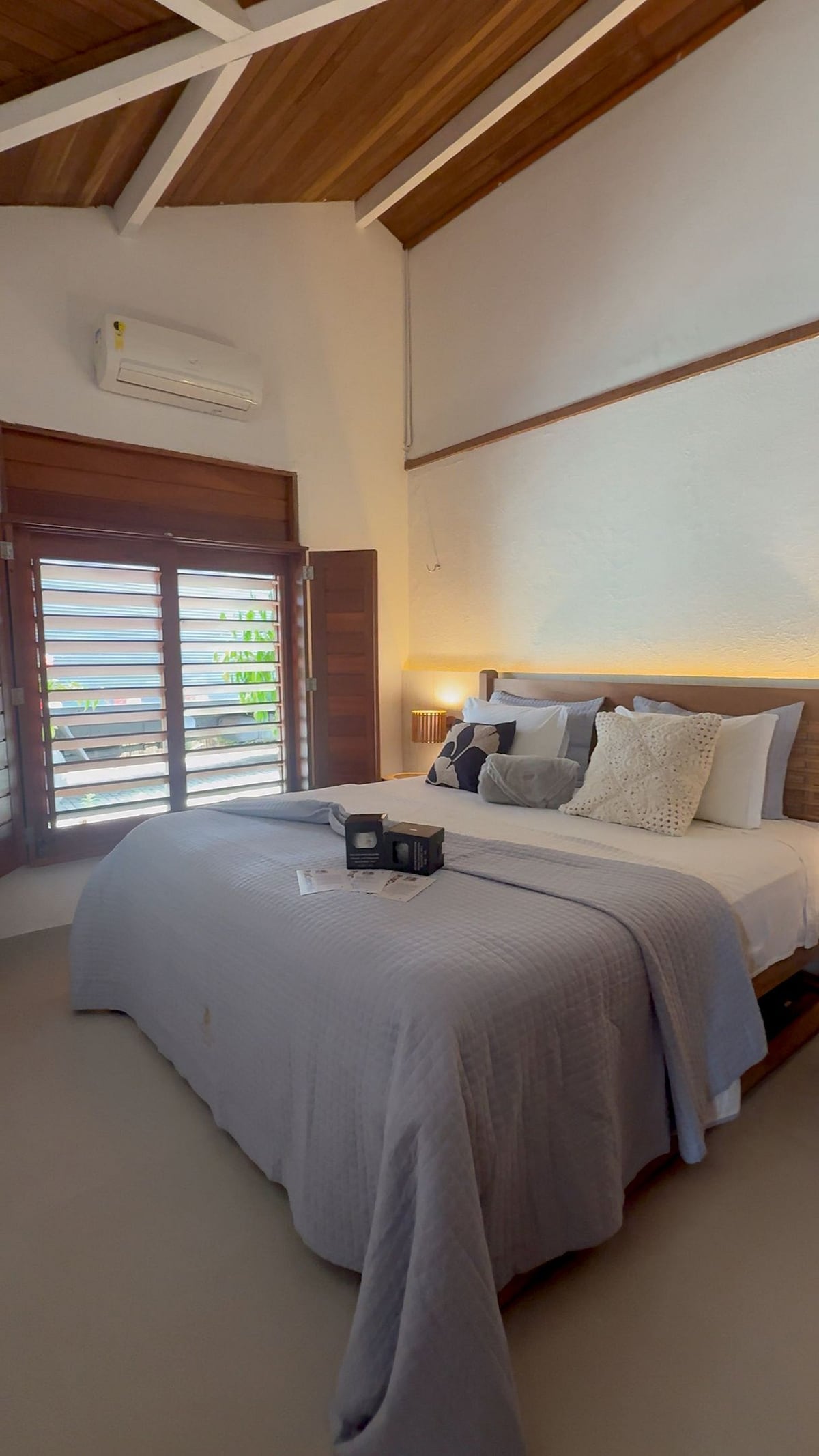 A Casa Zamá fica no condomínio Vila do Chapéu, a 100m da praia. Oferecemos várias áreas para você aproveitar: academia ao ar livre, pista de skate, quadras de beach tennis, playground, lindos jardins e espaços para caminhar. A casa possui 3 suítes equipadas com camas king size e ar condicionado, sala de estar com tv, cozinha gourmet, deck com churrasqueira e piscina. A diária inclui café da manhã e serviço de limpeza. Possuímos uma bike elétrica para aluguel (consultar informações)
