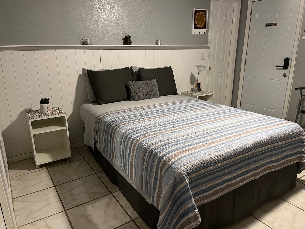 Toto soukromé studio se nachází v oblasti West Tampa vedle stadionu Raymond James Buccaneer. Velmi blízko centra, Midtownu, letiště Tampa, mezinárodního náměstí, mezistátní dálnice a oblíbených restaurací, jako jsou Flemings, Ocean Prime a Armature works. Pohodlně se zde ubytují až 2 osoby. Tento ošuntělý elegantní úkryt je ideální pro turistické nebo pracovní/studijní pobyty. Každý detail byl dobře promyšlen a zajišťuje našim hostům ty nejlepší zážitky.