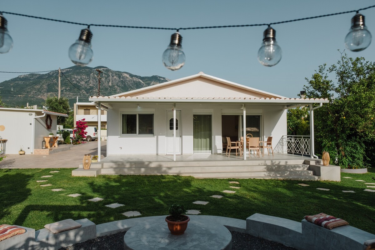 The house is located on top of the sea, with a unique view of the Messinian bay and unforgettable sunsets. It gives you the feeling that you are on board of a ship. You can enjoy the big garden as well as the rest of the space, which is designed to provide comfort and relaxation in your vacation. The sea is a walking distance from the house (5min)
