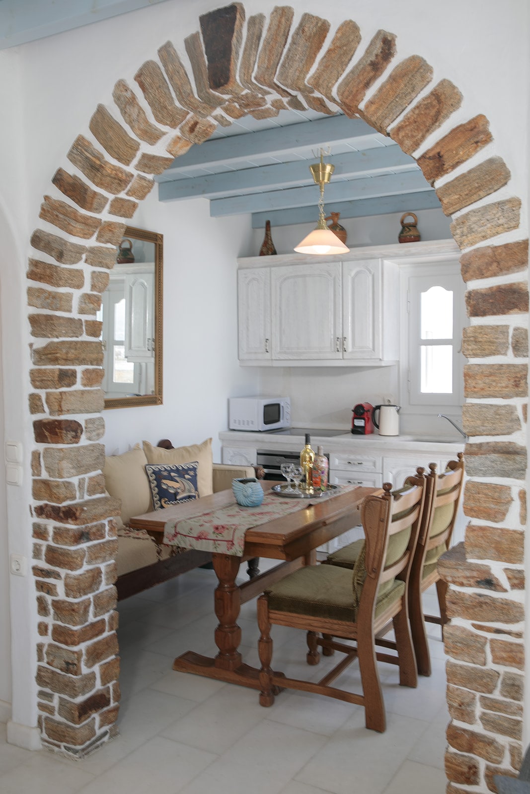 Přízemí bytu v tradičním kykladském stylu, v samém srdci osady Parikia. V ideálním případě se nachází, nabízí klid a relaxaci a pohodlnou centrální polohu. V docházkové vzdálenosti: všechny zajímavé pohledy (starý trh, frankish hrad), pekárna, obchody. Moře je jen pár metrů od domu, a za 2 minuty se dostanete na pobřežní ulici, kde si můžete vychutnat západ slunce. Přístav, autobusové nádraží a stání taxíků jsou vzdáleny 3 minuty chůze.