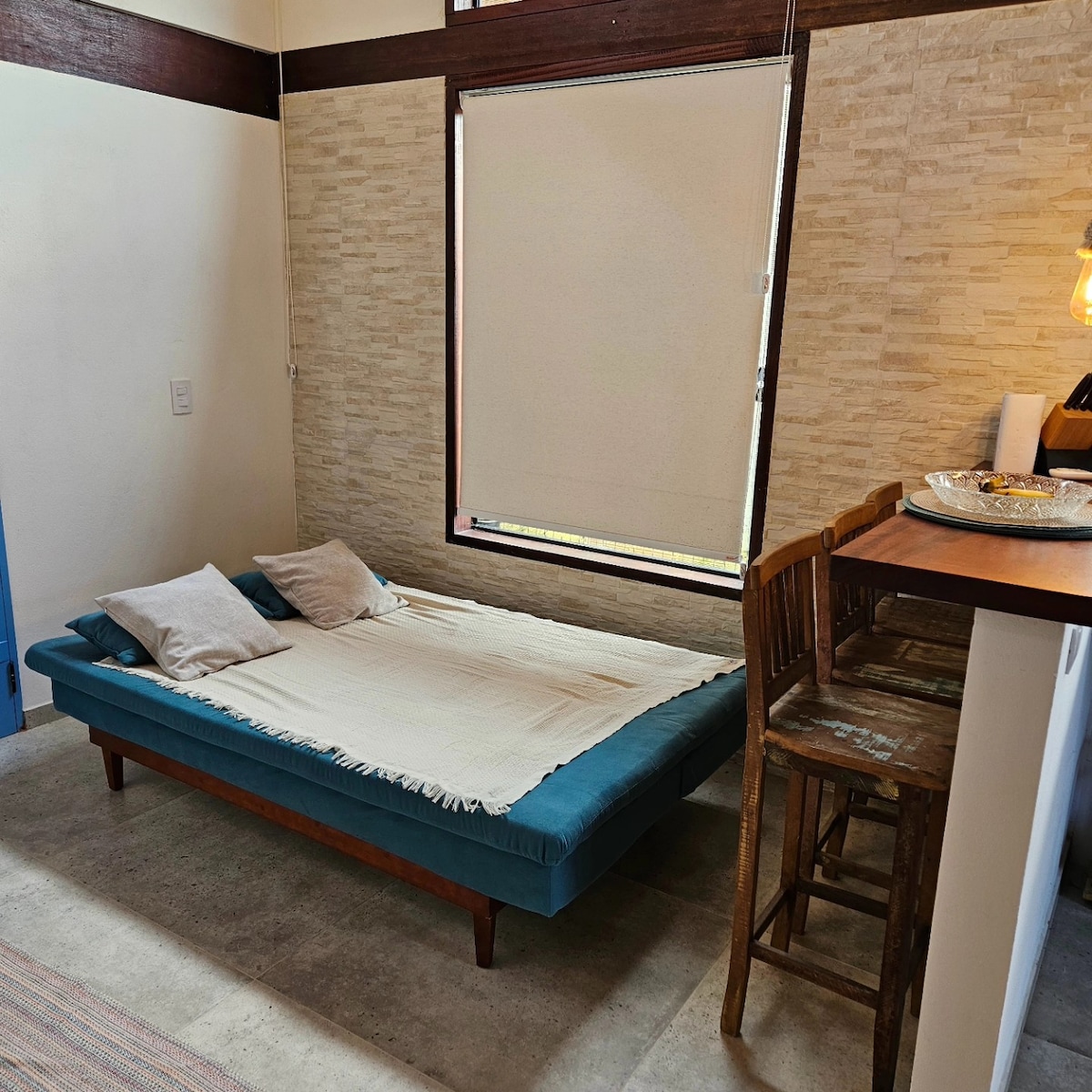 Chata, oblíbená u hostů, je útulná, pohodlná a rustikální, ideální pro páry, které hledají klid a soukromí, aniž by byly daleko od atrakcí historického centra Paraty. Vše z dřeva, vyrobeno námi společně s místními tesařskými umělci. Má vybavenou kuchyň, Wi-Fi, kvalitní ložní prádlo a krytou zahradní kůlnu uprostřed zahrady. Exkluzivní prostor plný šarmu!