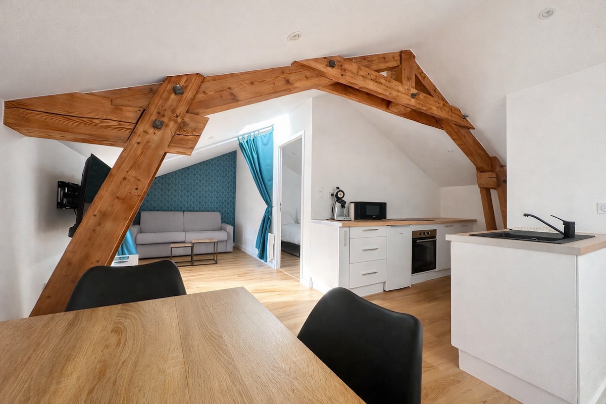 ⭐️Venez découvrir ce bel appartement entièrement rénové, cosy et calme situé au 3e étage (sans ascenseur) d’un immeuble résidentiel. Il se trouve à proximité immédiate du centre-ville, du campus Tréfilerie (50m), de tous les transports en commun et de restaurants, supermarchés, cinéma… ⭐️