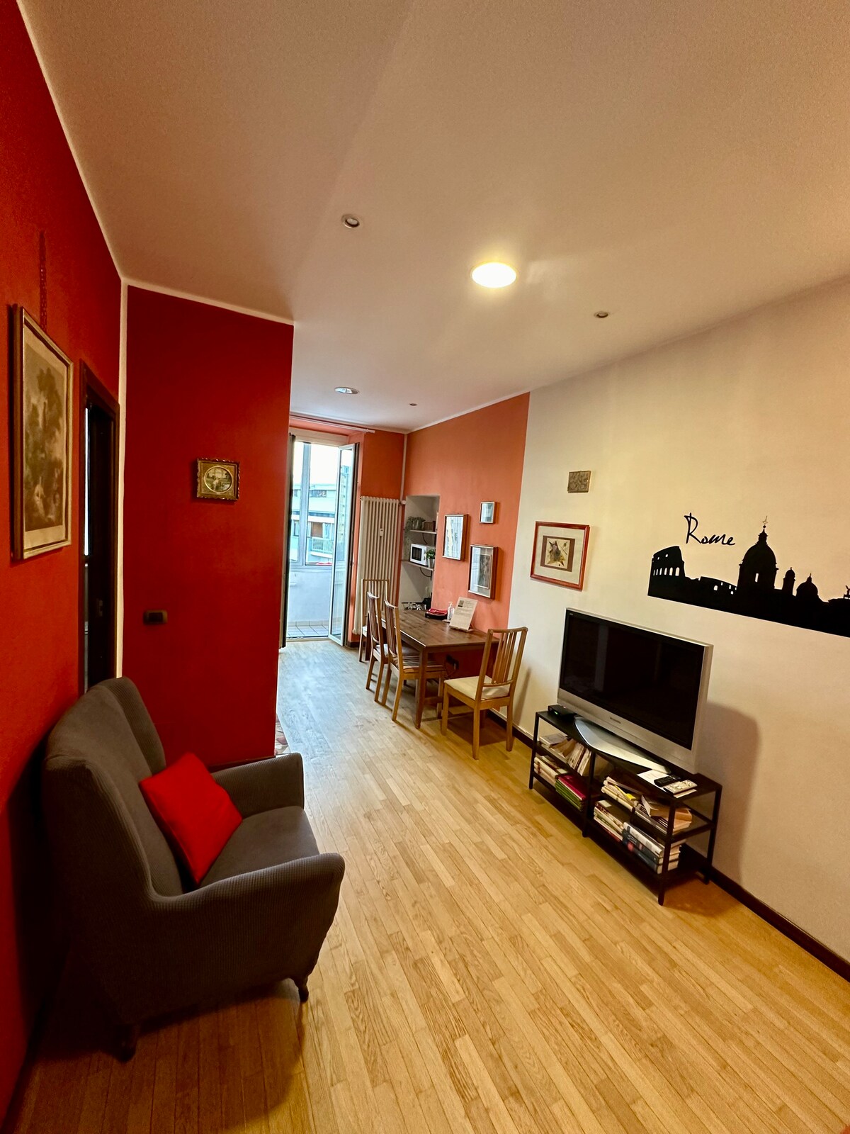 Deliziosa mansarda con due balconi in piccolo condominio di due piani, comoda per raggiungere il centro e la stazione ferroviaria con autobus, tram o metro. In zona potete trovare negozi, bar, ristoranti e mercati rionali. L'appartamento è composto da una camera matrimoniale, una cucina con soggiorno e divano letto. L'alloggio ha connessione wi-fi e aria condizionata.