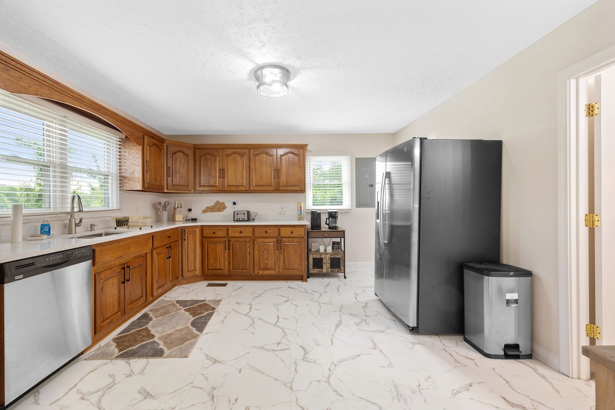 V tomto klidném venkovském domě si odpočine celá tvoje rodina nebo i více rodin. Centrálně umístěný. 3,5 míle od mezistátní silnice 65 v Park City, KY. 4 míle od vchodu do Národního parku Mammoth Cave (12,5 míle od uvítacího centra). 6,3 míle od golfového klubu Park Mammoth. 20 míle od Bowling Green/WKU/Corvette Museum/Beech Bend. 23 míle od státního parku Barren River. Toto je domov bez kouření / domácích mazlíčků. Tento domov se nachází na venkově, ale rychle se dostanete na mezistátní dálnici (4 míle) nebo do restaurací 2-9 mil.