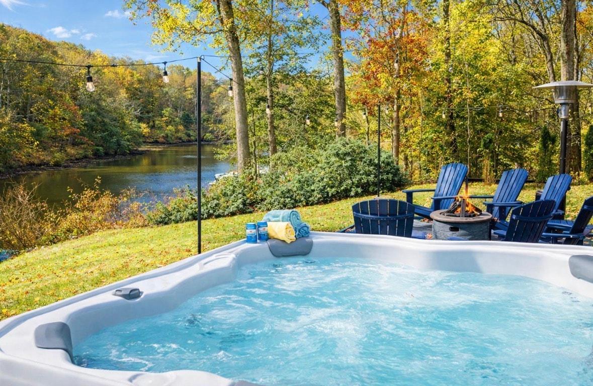 Ráj na nábřeží u řeky Seneca Creek s vířivkou