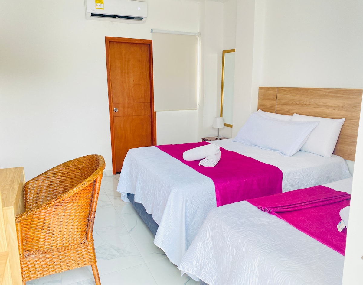 Ubytování se snídaní v ceně. Soukromý pokoj s vlastní koupelnou Tento krásný dvoulůžkový pokoj se nachází 3 bloky od pláží El Rodadero, jeden blok od nákupního centra Arrecife, supermarketů a restaurací. Má vše, co k pobytu potřebuješ.