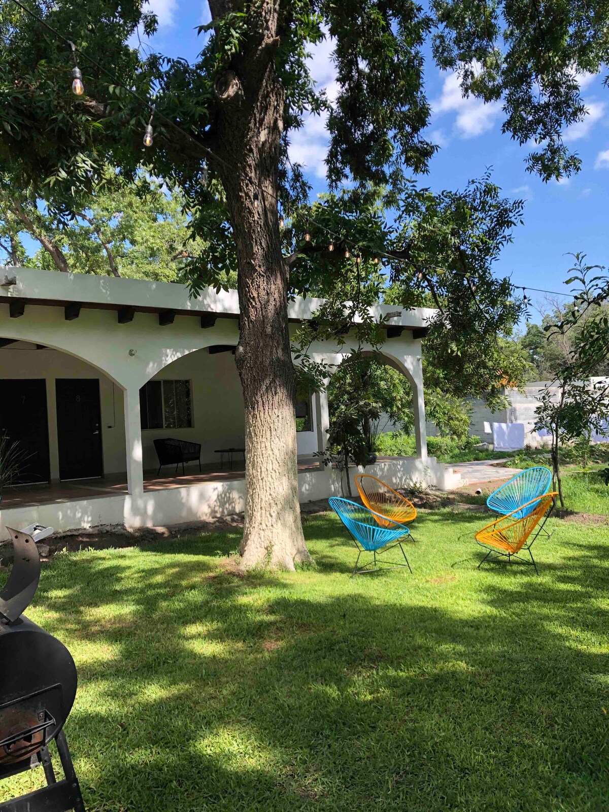 Pěkný nově zrekonstruovaný dům v Parras Center. Má zelené plochy, vyhřívaný bazén, temazcal, venkovní jídelnu s grilem, parkování, ruské kolo (s ocelovou ochranou), lepidlo. Ideální místo k odpočinku jako rodina. Všechny pokoje mají stropní ventilátory a mini-split.