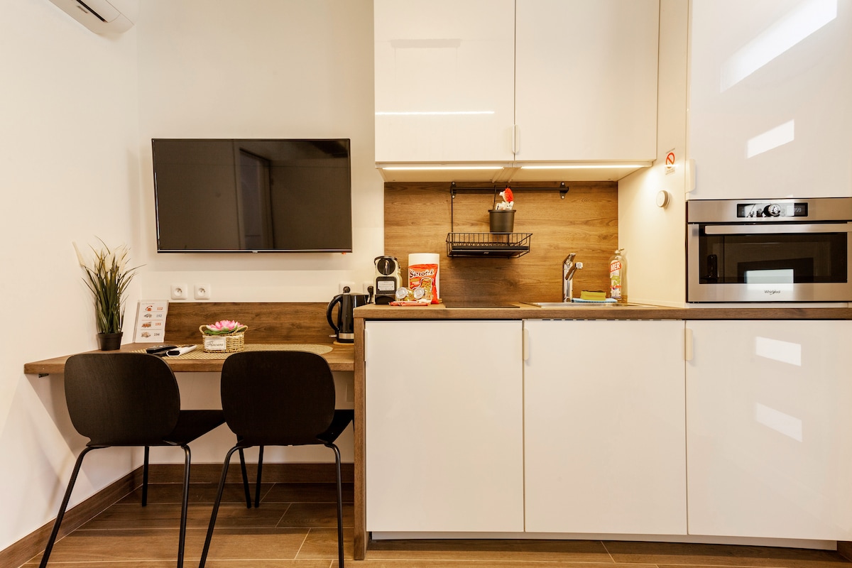 Moderní garsonka, garáž zdarma, samoobslužný proces ubytování