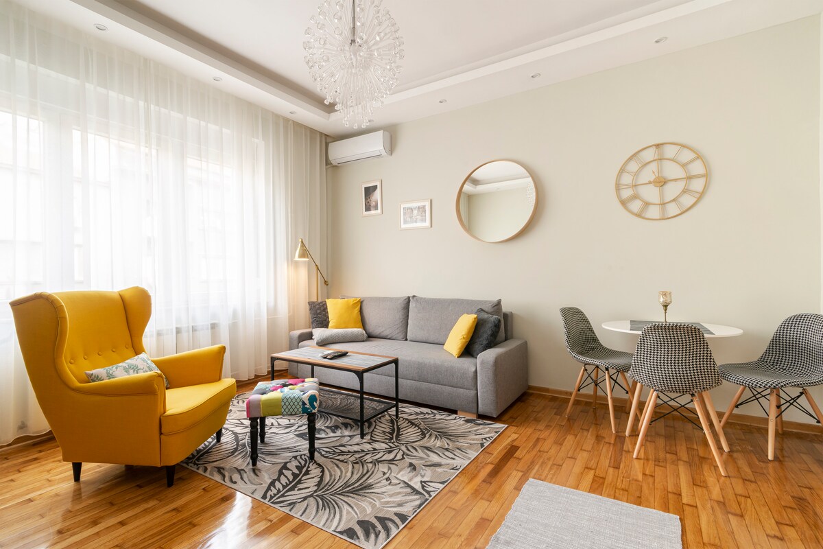 Tento 80 metrů čtverečních byt má dvě ložnice rozdělené velkou kuchyň/jídelna/obývací pokoj. Byt se nachází v docházkové vzdálenosti od hlavních bělehradských turistických lokalit - Národní shromáždění, muzeum a divadlo, Knez Mihajlova ulice, Kalemegdan pevnosti, Skadarlija (bohémská čtvrť). Hosté mohou v nedalekých restauracích, kavárnách a hospodách najít různé možnosti stravování a pití. Některá z nejlépe hodnocených jídelen jsou v této oblasti. Na rohu je 24/7 obchod s potravinami.