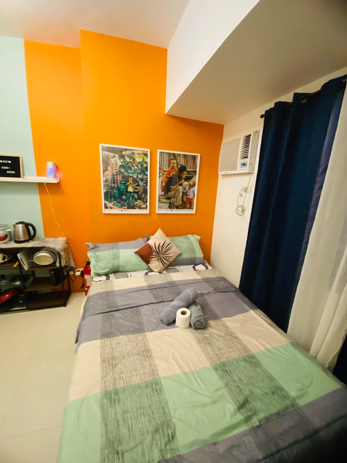 Vítej v Cozy Nook PH na 15F Maledivské věži, Azure Urban Resort Residences! Zažij dokonalou kombinaci industriálně útulného a uměleckého designu v našem dvoulůžkovém kondominiu s 1 koupelnou. Tento promyšleně zařízený prostor je navržen tak, aby ti během pobytu poskytl pohodlí a styl. • Herní konzole: 20 000 klasických her pro více hráčů se 2 ovladači • Stolní hry • Karaoke • Hrací karty • 300mbps Wi-Fi • Balkon s výhledem na panorama Sunrise City • 55palcová chytrá televize s Netflixem
