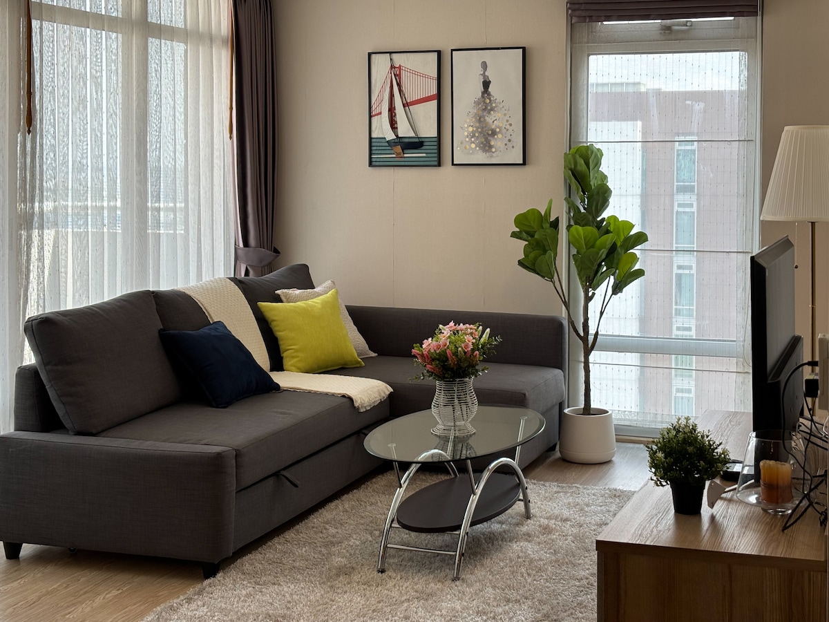 Moderní a prostorný kondominium se 3 ložnicemi – 118 m² poblíž IMPACT, Muang Thong Thani Vítej ve svém stylovém domově daleko od domova! Tento moderní apartmán o rozloze 118 m² nabízí dostatek prostoru, pohodlí a všechny nezbytnosti – ideální pro rodiny, služební cesty nebo malé skupiny účastnící se akcí v IMPACT nebo objevující Nonthaburi.