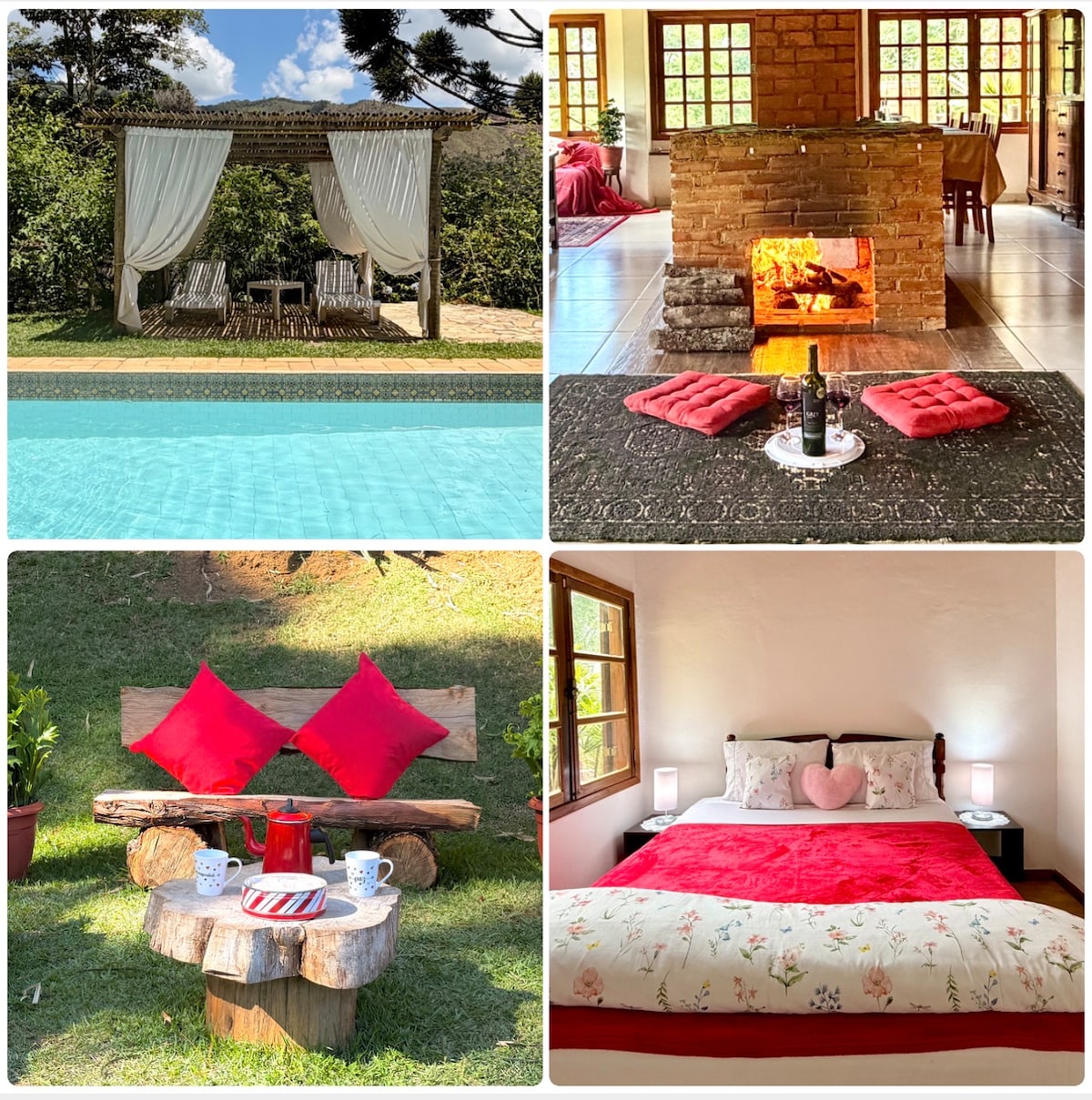 Toto místo na vrcholu hory, ideální pro rodiny a přátele, nabízí soukromí, volnočasové aktivity, odpočinek a rozjímání. Krásné zahrady a jedinečný výhled na Miguel Pereira a Paty do Alferes. Dům ve venkovském stylu se 3 ložnicemi až pro 11 osob, vyhřívaný bazén, prosklený kiosk s grilem, kamna na dřevo, 43" Smart TV a Wi-Fi, jezero a altán s ohništěm. 10 minut jízdy od centra obou měst, rychlý přístup do obchodů, restaurací a k turistickým atrakcím.
