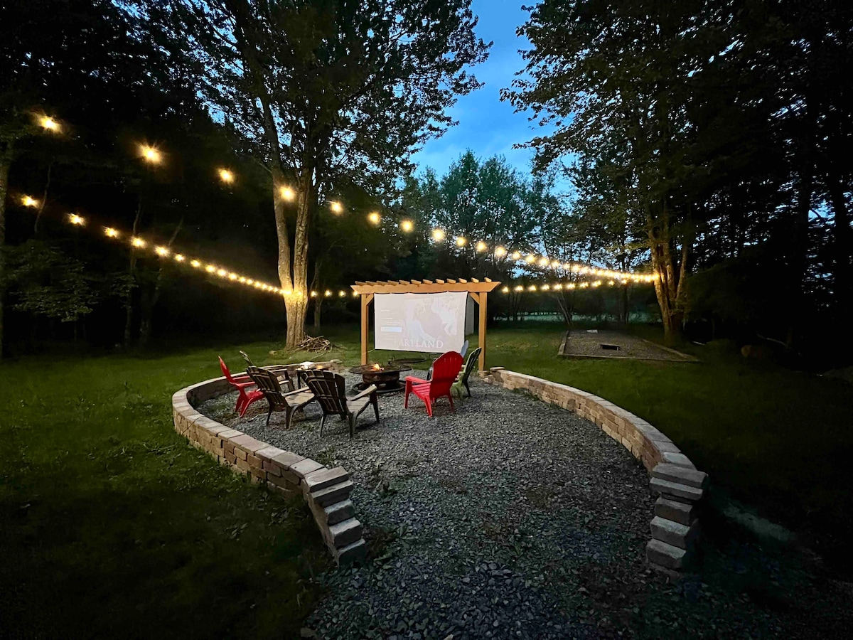 Srdečně tě vítáme, abys hostil/a své nadcházející rodinné setkání v naší krásné a prostorné vile „HillTop Manor“ s kulečníkovou místností, rodinný pokoj s 85palcovou televizí Samsung, domácí kino a PS5 v The Hideout; jedna z předních čtyřsezónních komunit NEPA!! Komunita nabízí dostatek pro každého - lyžování, tubing, fitness centrum, klubovnu, jezera, pláže, spuštění kánoe/kajaku, bazén, tenis, golf atd.