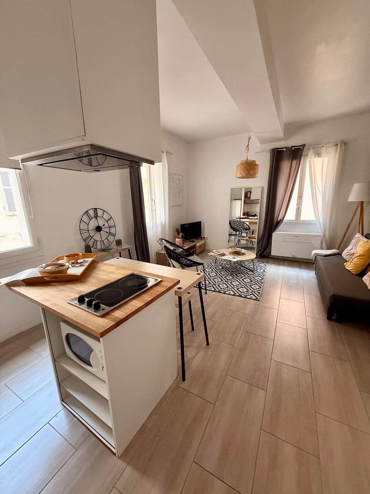 Reformovaný apartmán v historickém centru města, klimatizace a wifi, vybavený kuchyní se sporákem a lednicí, obývacím pokojem s rozkládací pohovkou a TV, ložnicí s manželskou postelí, koupelnou s italskou sprchou a pračkou Kousek od Cours Mirabeau, trhu s místními produkty a květinami Placené parkoviště 10 minut pěšky, Mignet nebo Bellegarde Neakceptujeme kojence a domácí mazlíčky Ideální pro objevování našeho krásného města Aix en Provence!