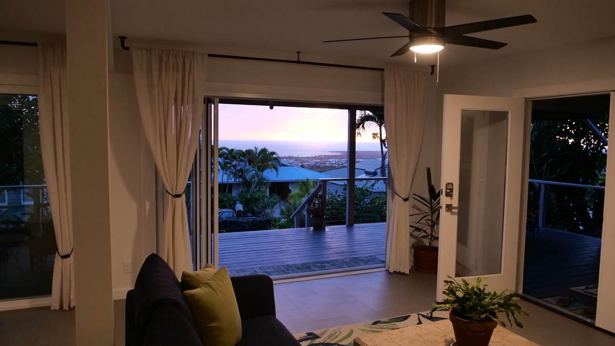 Serenity in Kona- with epic ocean views! Wake up with the ocean waves crashing below. Hang out on the lanai with some Kona coffee from the Green Flash cafe next door. You have a front row seat for whale watching during whale season. Or, hang out and enjoy the sunsets- at times with our local manta ray! We have a queen sofa bed, and AC. Close to town- an 18 minute walk. Quiet, very little road noise here. You can rent bikes too across the street.
