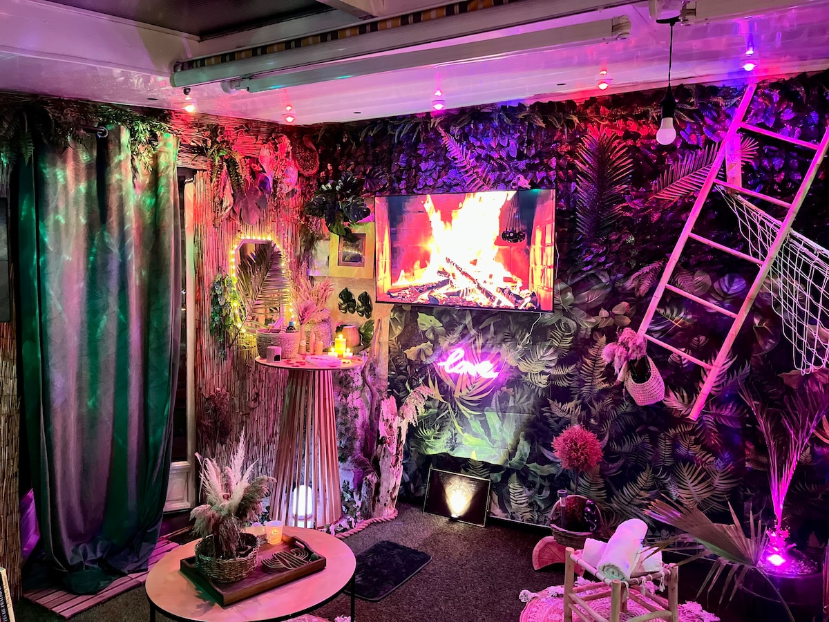 ✨ Découvrez le Mirage Tropical , une parenthèse raffinée au bord de la Loire 🌴. Profitez d’un jacuzzi privatif, d’une terrasse élégante et d’un espace jungle dépaysant pour vous évader. Amusez-vous autour du jeu de fléchettes, partagez un apéro exotique ou détendez-vous dans une atmosphère unique. Le soir venu, la chambre s’illumine de couleurs envoûtantes pour un moment chic et romantique 💖. Ici, chaque détail sublime votre séjour pour créer des souvenirs mémorables.🌴❤️❤️💕💕💕👄🫂❤️