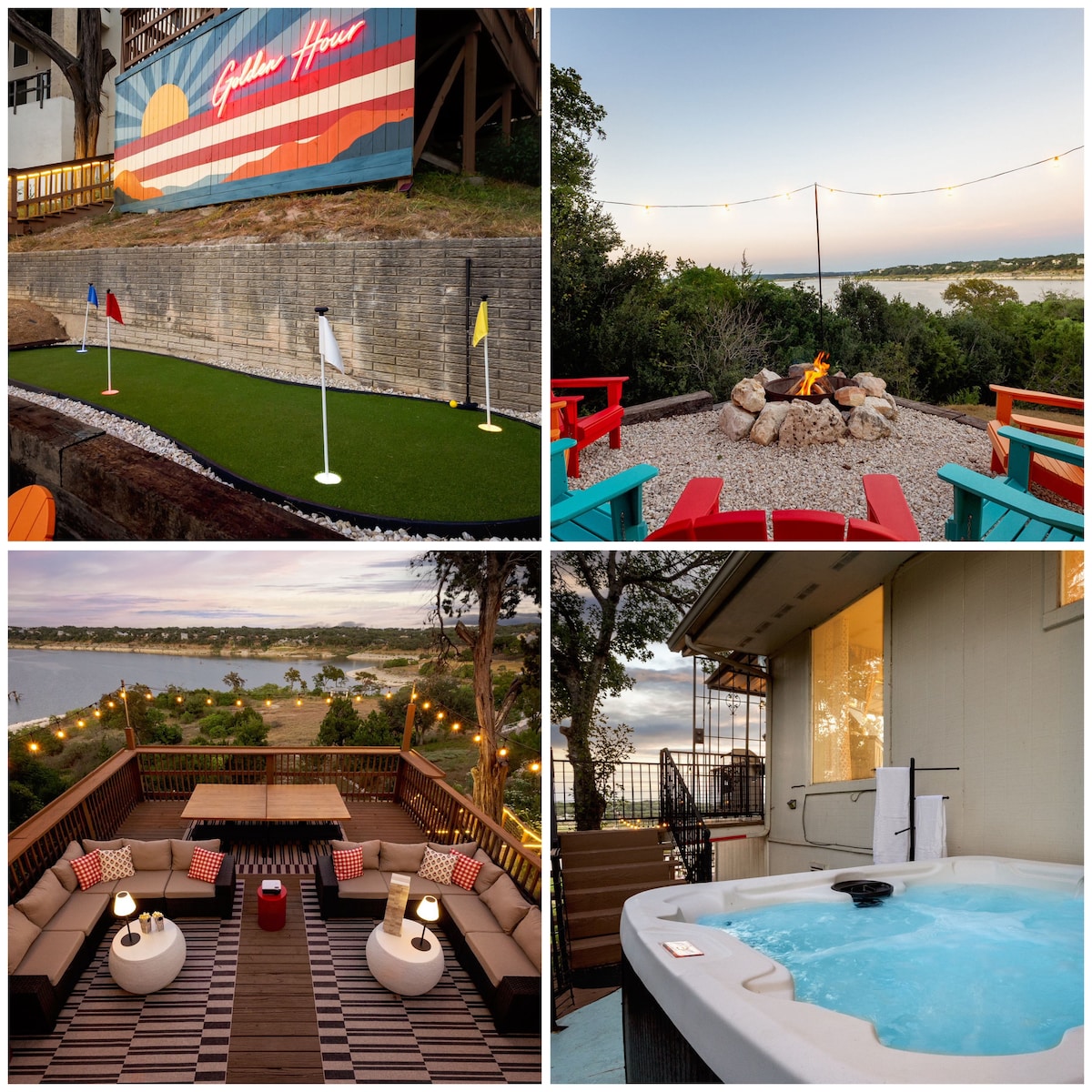 Lakefront-hot tub-fire pit-mini golf-outdoor movie