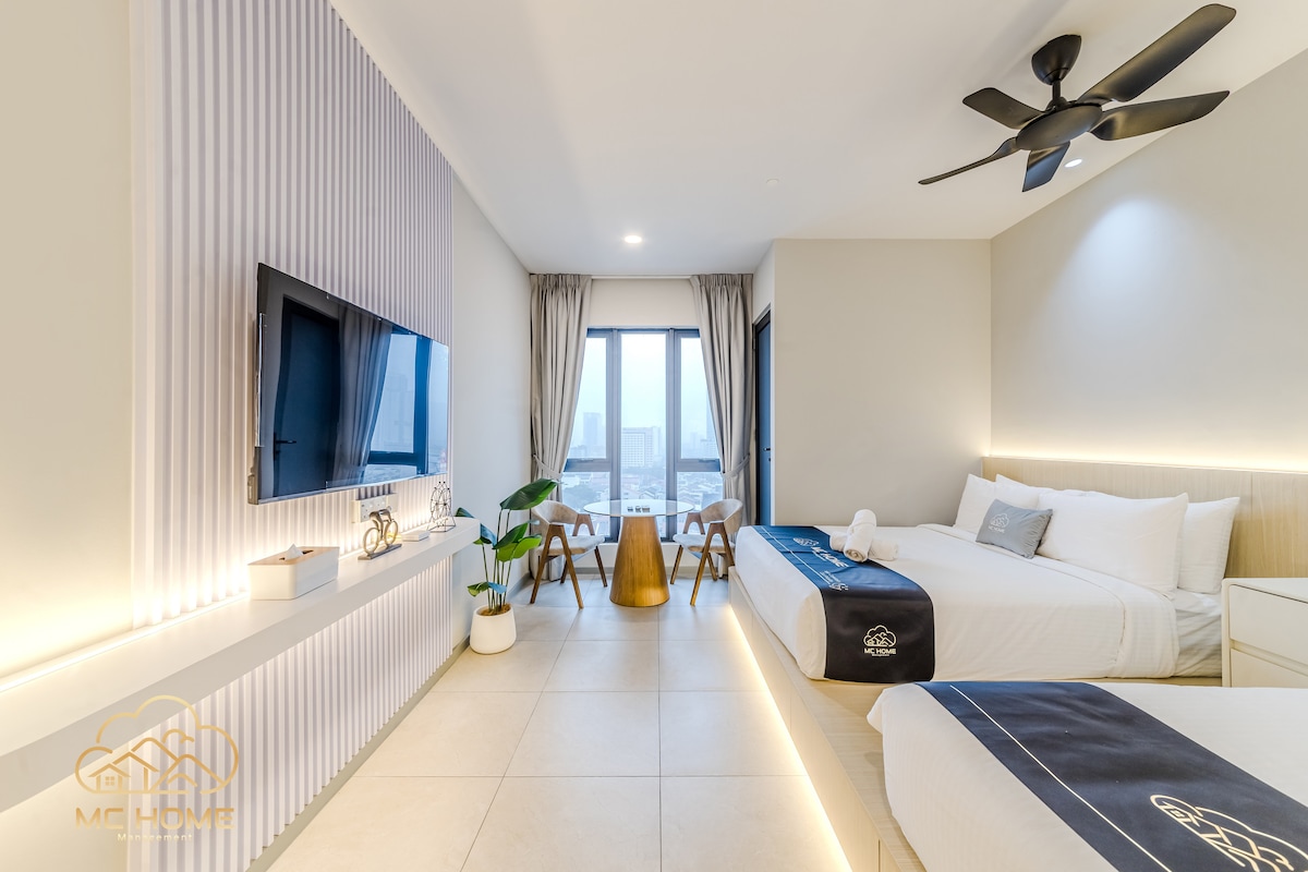 Stay at 22 Macalisterz Penang, a modern Muji-inspired studio in the heart of Georgetown with stunning Komtar & Seaview. Enjoy 5-star comfort with two queen beds, a Cuckoo water filter (hot/warm/cold), Smart TV, and high-speed WiFi. 🌇 Perfect For 💑 Families, Medical Travellers, Business Travellers 💻 Guests love the sky infinity pool, sky gym, and co-working space—all within walking distance to cafés, Gurney Drive, and heritage streets. Perfect for 2–4 guests seeking a cozy city escape.