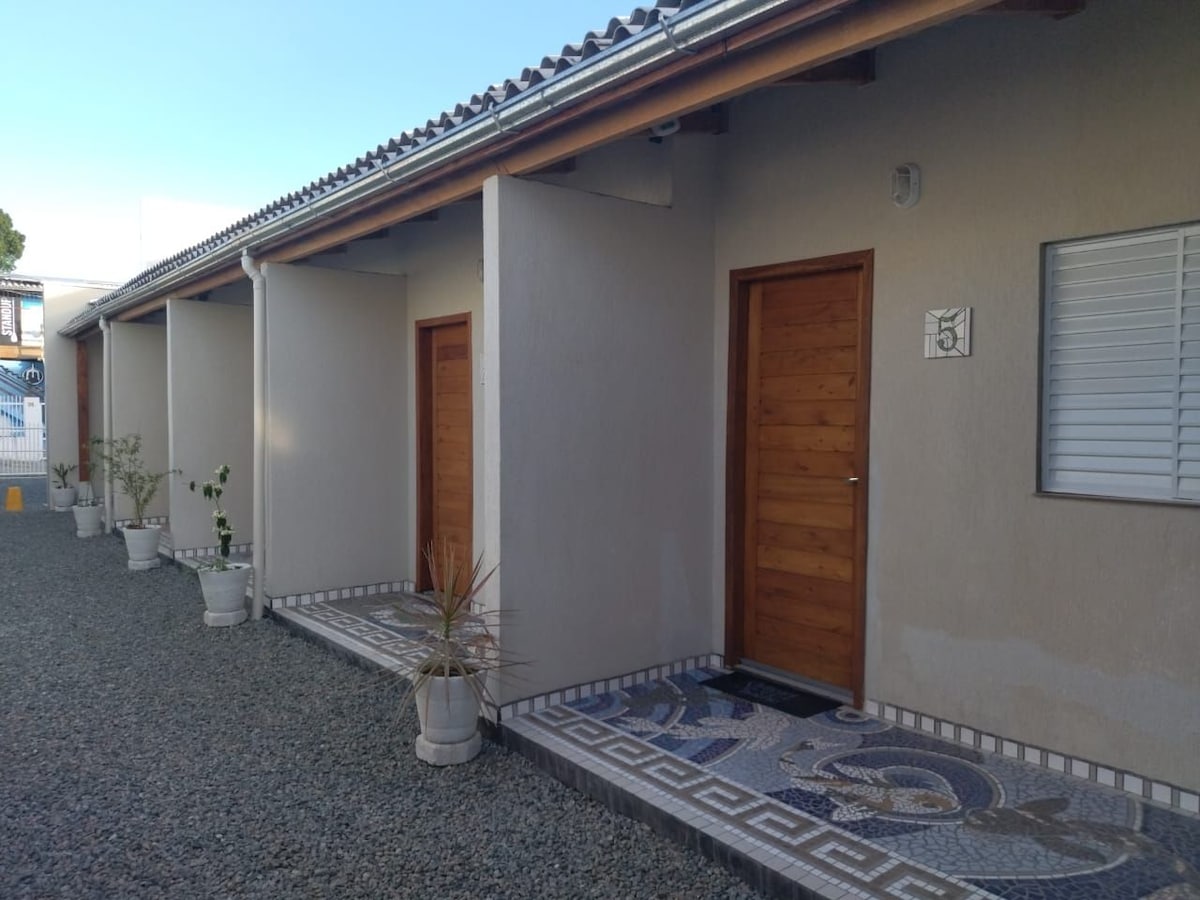 Útulné studio se nachází v klidné čtvrti Gravatá, jednom z nejkrásnějších míst na severním pobřeží Santa Catariny. Naše ubytování bylo navrženo tak, aby nabídlo pohodlí a praktičnost jen pár kroků od písku, se vším, co potřebuješ k relaxačnímu pobytu. Jen 40 metrů od pláže si můžeš vychutnat procházky při západu slunce, koupání v moři a plážovou atmosféru, aniž bys musel/a spoléhat na auto. • V blízkosti restaurací, tržiště, lékárny... • 4 km od zábavního parku Beto Carrero World a 7 km od letiště