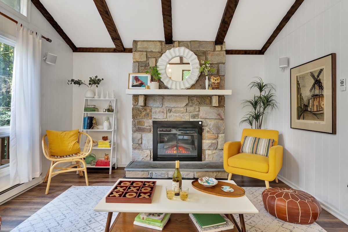 Uteč do této luxusní horské chaty ve tvaru písmene A v Birdsboro v Pensylvánii, která nabízí úchvatný výhled na hory. Vychutnej si teplo útulného krbu, oddechni si ve vířivce a využij venkovní kuchyni pro kulinářská dobrodružství. Tato chata je ideální pro relaxaci a oživení, s výhodným přístupem k nedalekým turistickým stezkám, možnostem rybaření a možnosti jízdy na kánoi. Je to skutečný únik z každodenního života.
