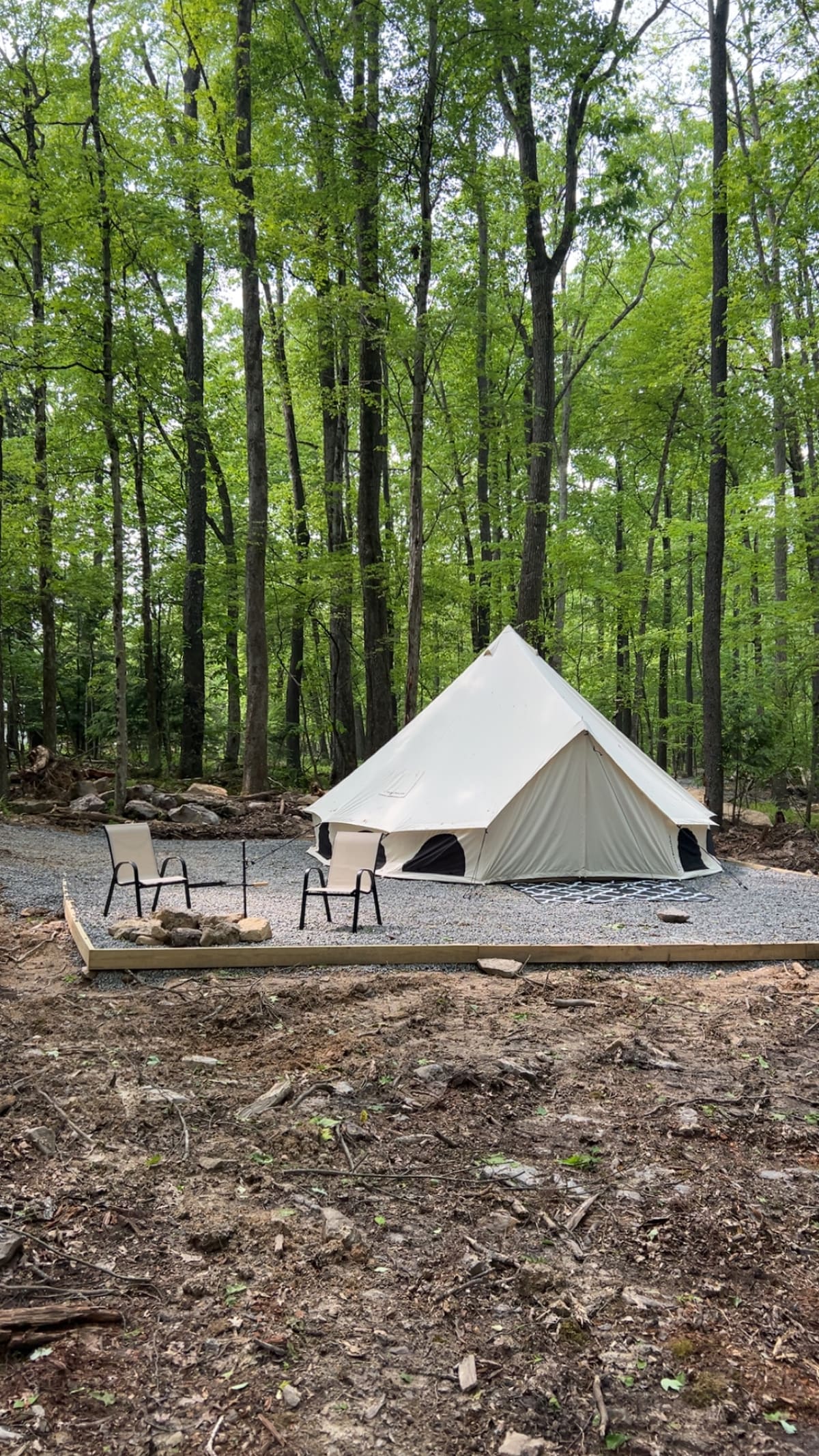 Zažijte kempování na farmě vánočních stromků na hranici státního lesa Rothrock a v těsné blízkosti State College v Pensylvánii a jezera Raystown. Uteč do přírody mezi stromy a na připravené tábořiště. Táboření s minimálním úsilím ve stanu s manželskou postelí. Kemp má ohniště, piknikový stůl, židle Adirondack a toaletu s jednorázovými sáčky. Z kempu je výhled na rybník, který je ideální pro rybaření. Nemovitost sousedí se státním lesem Rothrock, který je ideální pro objevování a turistiku.