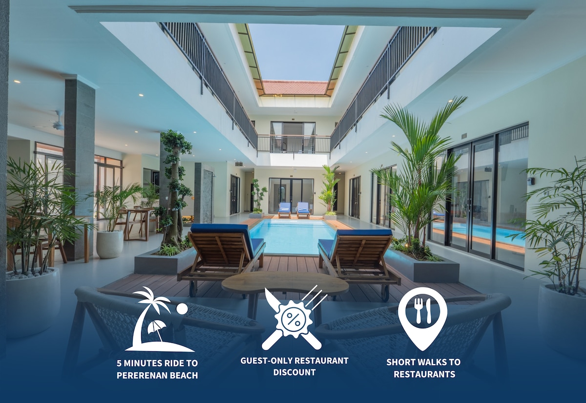 Penzion v centru města Klid uprostřed shonu. Soukromý bazén | Zelená zahrada | Pohodlný moderní prostor V blízkosti nákupních center, restaurací a zábavních center. Na letiště (22 minut), do Kuty (16 minut), do Seminyaku (13 minut), Cangggu (21 minut) Vhodné pro domácí dovolenou, rodinné dovolené nebo soukromé akce.