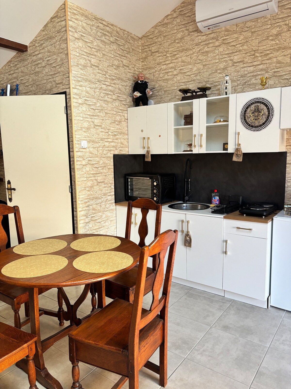 Appartement meublé composé d’une chambre (avec SDB) et 2 lits) (plus canapé sur demande avec supplément de 10€ pour la semaine et d’une cuisine-séjour toute équipée. Avec son accès individuel, cet endroit chaleureux entouré par la verdure vous offrira confort et intimité. Place de parking réservée à 10 mètres de l’entrée. L’appartement constitue le rdc de ma maison, je suis discrète mais reste disponible si vous avez besoin ;)