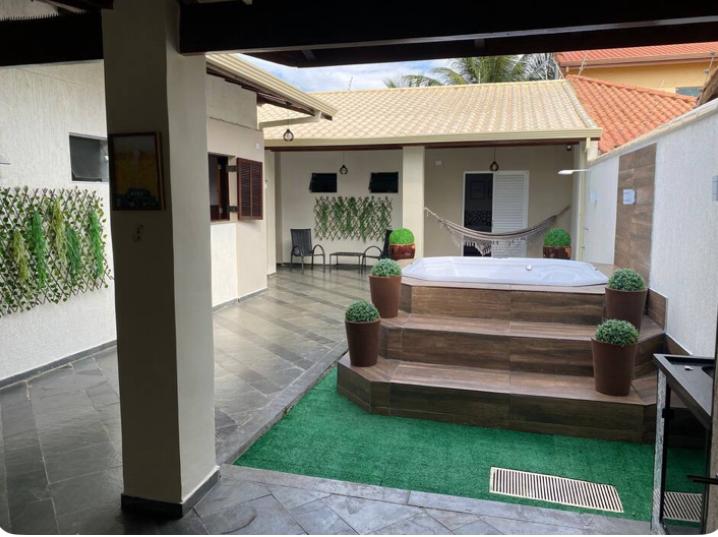 Vynikající dům v sousedství Oásis, Peruíbe - SP. Skvělá poloha, v blízkosti supermarketů a dalších zařízení. 800 m od pláže. Má 2 parkovací místa, 3 ložnice, 6 lůžek, velký trávník, háčky na sítě, kulečníkový stůl, prostor s grilem. Kuchyně vybavená sporákem, mikrovlnnou troubou, lednicemi, domácími potřebami, klimatizací, 55palcovou Smart TV, 120MB internetem, Wi-Fi. Bazén s vířivkou a nočním LED osvětlením. Přijímám pouze malá/střední domácí zvířata.