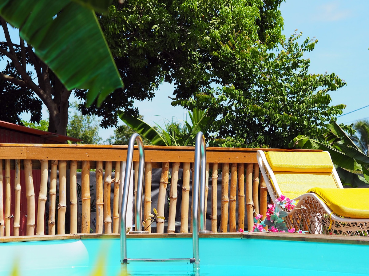 Vítej v našem útulném útočišti! 🌴 Budeš blízko bílých písečných pláží a nejživějšího tržiště na ostrově. Soukromá vířivka zajistí dokonalou relaxaci po dni stráveném objevováním regionu. Objev blaženost zdřímnutí na venkovní posteli, kde tě bude hladit jemný tropický vánek. Ponoř se do vany, kde tě teplá voda uprostřed přírody zklidní. Těšíme se, až se s tebou podělíme o kouzlo našeho malého kousku ráje.