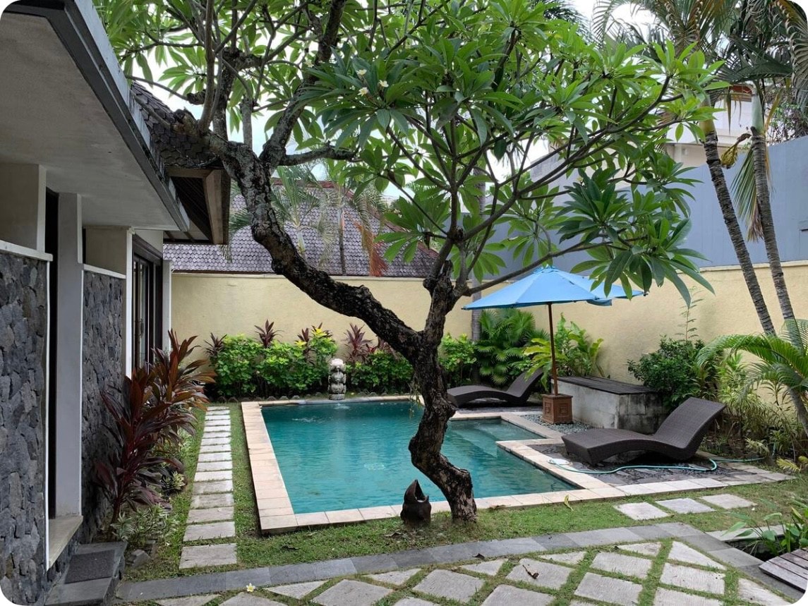 Soukromá vila s bazénem. 3 MINUTY CHŮZE NA PLÁŽ SEMINYAK. 3 ložnice s klimatizací. 3 soukromé koupelny. Teplá voda. Prostorný balijský venkovní obývací pokoj a jídelna s přímým přístupem k bazénu. WIFI. Chytrá televize (Netflix, YouTube). Zvuková lišta s Bluetooth pro přehrávání hudby. Bezpečnostní schránka. Denně teplá snídaně a úklid kromě neděle. Pro příjezd po 18:00 je nutné využít námi zařízeného řidiče za poplatek pro hladký příjezd a snadné ubytování.