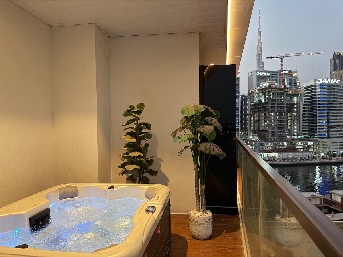 Luxusní 1 BR | soukromá vířivka | výhled na kanál a Burj