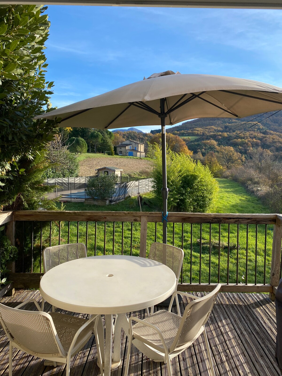 Relax and recharge your batteries in this pretty & quiet pied-à-terre, nestled in a 34,000 m2 site on the edge of the forest in the foothills of the Syncinal de Saou. From the swimming pool you have a beautiful view of the Drome valley. Enjoy the surroundings to hike, swim, read or rest. The 30m2 studio has a double bed in the living room and a single extra bed on the mezzanine accessible by a ladder. From the house you can directly access multiple beautiful hiking trails.