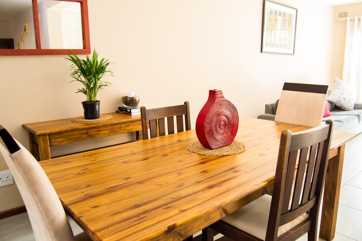 Objev klid v tomto okouzlujícím prostorném bytě s 1 ložnicí a zabezpečeným přístupem do garáže s chytrou aplikací, bezplatným Wi-Fi, Netflixem a blízkostí Cascades Lifestyle Centre a Liberty Midlands Mall, se snadným přístupem k N3. Radnice PMB 5 km Plně vybavená kuchyň, panoramatický obývací pokoj s TV s Androidem. V ložnici je velká manželská postel s klimatizací, sprcha poskytuje útulné pohodlí. Ubytování pro 2 dospělé, - rezervuj si pobyt ještě dnes! Alternativní/solární energie udrží světla rozsvícená.