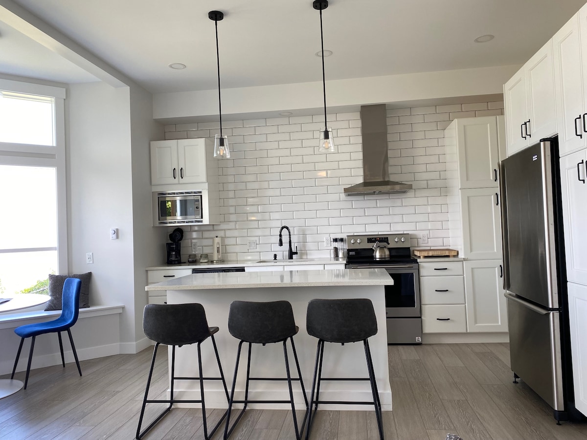 **REGISTRATION H719166429 ** *Host can offer 40% discount on tix at Sun Peaks ski resort NEW MODERN HOME located in the central city core. Perfect accommodation for your stopover in Kamloops. PRIVATE CLOSED-OFF SUITE, with more than 650 square ft of space. Area includes a large bedroom (QUEEN bed), attached private bathroom with walk-in shower, and a cozy lounge with a big screen TV and fireplace. Less than a 3 min drive/12 min walk to the city's downtown - restaurants shops and entertainment