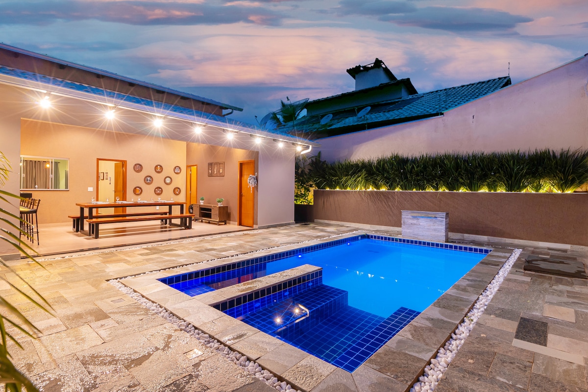 HOUSE CHARM DO CERRADO je nádherný, blízko centra, útulný a přátelský, má 3 ložnice, jednu apartmá a všechny s klimatizací, 1 manželskou postel, jednu samostatnou postel, plnou postel a ložní prádlo, papoušky, maleiros a zatemňovací závěsy. Sala com smart tv, Sky, Netflix a wi-fi; Kompletní kuchyň; Lavabo; Volnočasová zóna s grilem, mrazákem, vyhřívaným bazénem (solárním), vodopádem a lehátky; Redário; Garáž pro 3 auta.