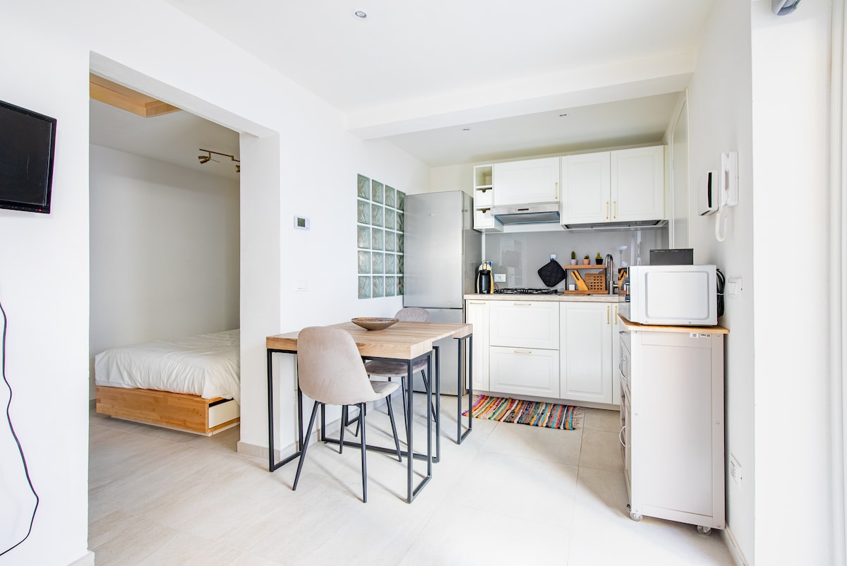 Tento světlý apartmán, který je jen pár kroků od moře, je klidným útočištěm, kde se čas zpomaluje. Ze soukromé terasy s lehátky a jemným zvukem vln se můžeš rozhlížet mezi oblohou a mořem. Intimní a okouzlující místo, ideální pro zapomenutí na každodenní život a přijetí kouzla dovolené zavěšené mezi klidem a krásou.
