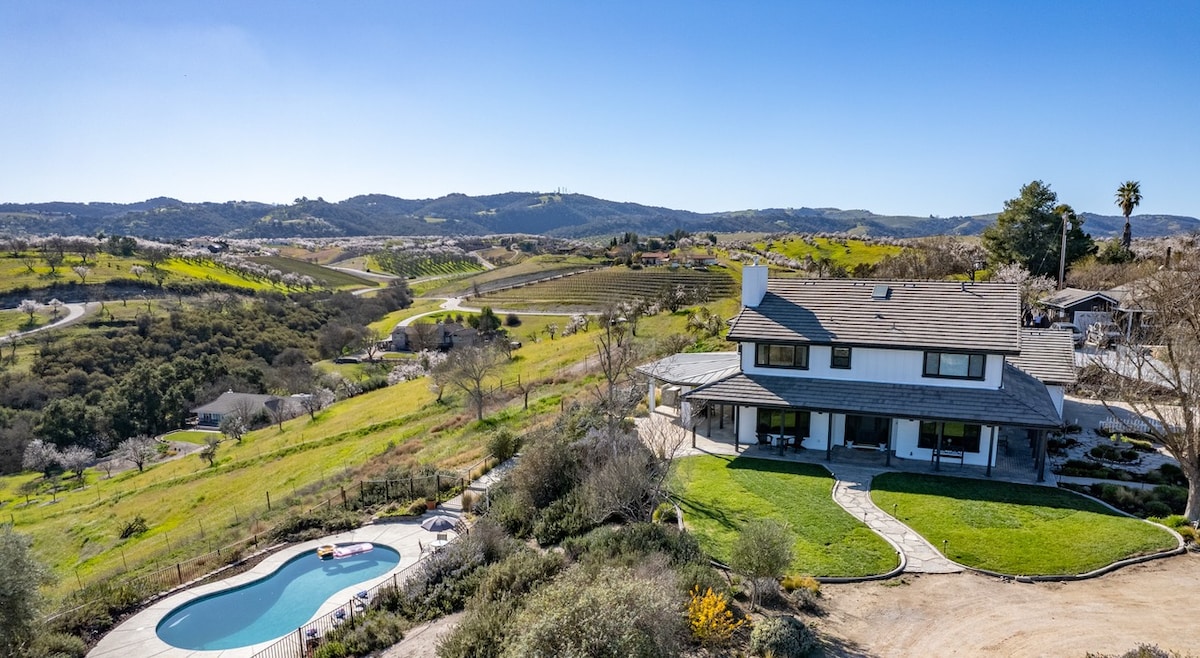 House in San Luis Obispo with pool! Located 10 minutes from downtown SLO, 15 minutes from the beach, 15 minutes from Cal Poly campus, and in the heart of Edna Valley wine country. This property boasts a large pool and hot tub, beautiful Mountain View’s, and comfortable outdoor living. Have a night around the fire pit, play a game of air hockey, or enjoy the outdoor 75" T.V. There is truly something for everyone at this location..