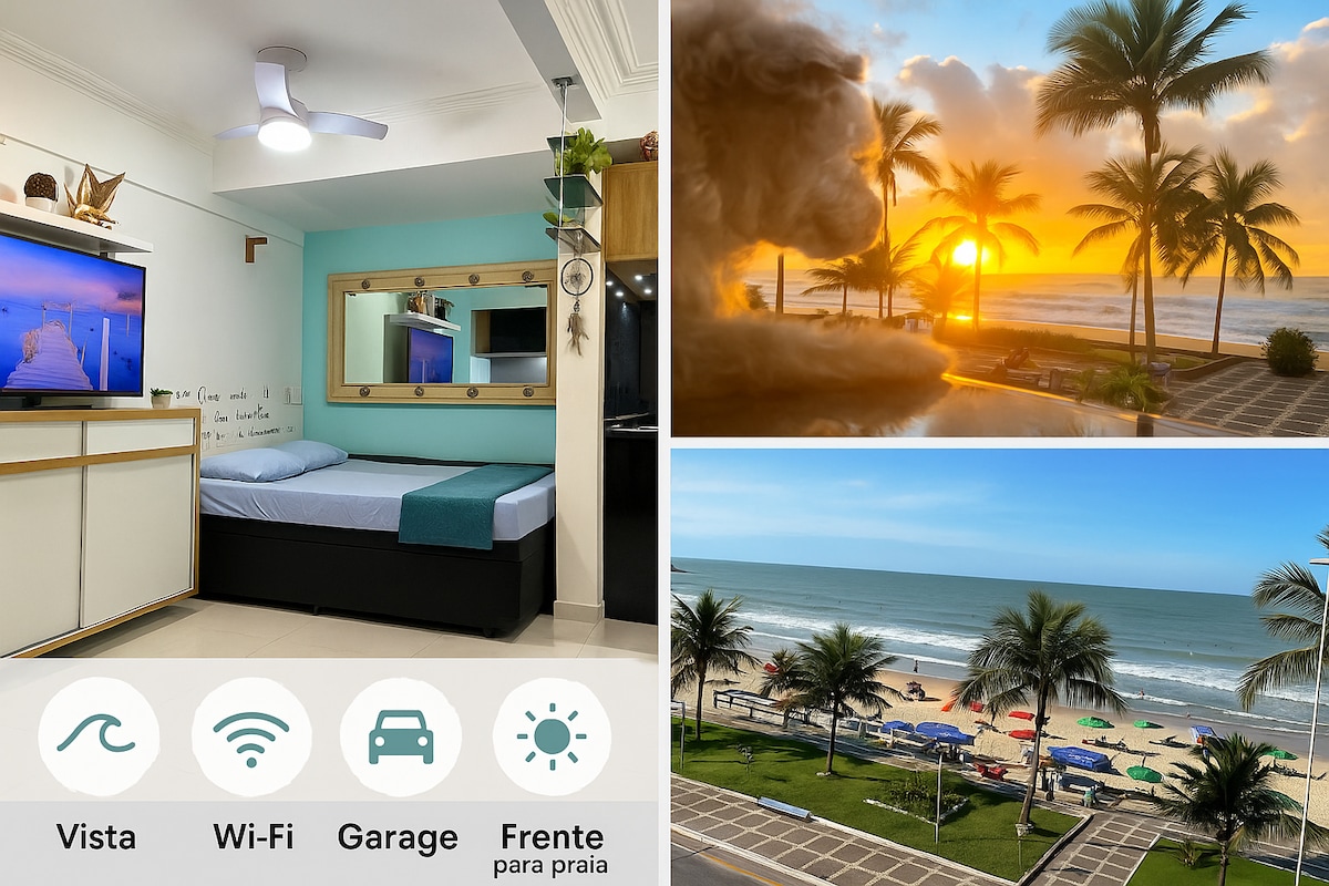 🏖️ Flat Pé na Areia – o mar é o seu quintal! Acorde com o som das ondas, sinta a brisa e o sol entrando pela janela. 🌞 Alexa cuida do ambiente — você só relaxa! Cozinha completíssima: air fryer, cafeteira Dolce Gusto, grill e fogão. Cama super confortável, TV Smart, Wi-Fi rápido, ar-condicionado e Garagem. Aceitamos PETS 🐾. Perfeito para casais, quem ama curtir o mar de verdade. A poucos passos da areia e pertinho de tudo: restaurantes, farmacia sorveterias e mercados! 🌊😎