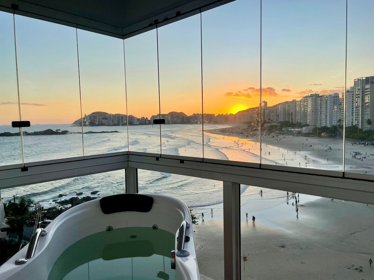 Luxusní a stylové útočiště pro páry v São Vicente! Exkluzivní prostor pro páry s dobrým vkusem. Odpočiň si v EXKLUZIVNÍ vířivce, v bazénu na střeše s neuvěřitelným výhledem, ideálním pro líbánky nebo pamětní rande. Prémiová lokalita: Pouhých 600 metrů od pláže Gonzaguinha a 2 minuty chůze od nákupního centra Brisamar, obklopená skvělými restauracemi. Vybavení: Parkování V CENĚ s obsluhou, herna a naprosté zabezpečení. Nejlepší volba pro nezapomenutelné chvíle ve dvou