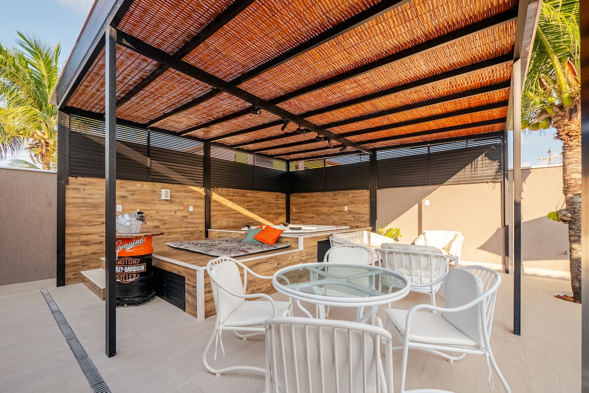 Zařízený dům, který se nachází v uzavřeném kondominiu s 24hodinovou soukromou ostrahou, 5 minut od pláže. It has 1 suite and 3 bedrooms, living room and large kitchen, spacious service area. Bazén s kioskem, grilem a mrazákem, stoly se stíněním. Tři ložnice s klimatizací, jedna ložnice se stropním ventilátorem, internet přes Wi-Fi. Kondominium má přístav s přístupem k řece Capivara, hřiště, multisportovní hřiště. Spotřeba energie je navíc. Rezervuj si pobyt na 2 noci a déle.