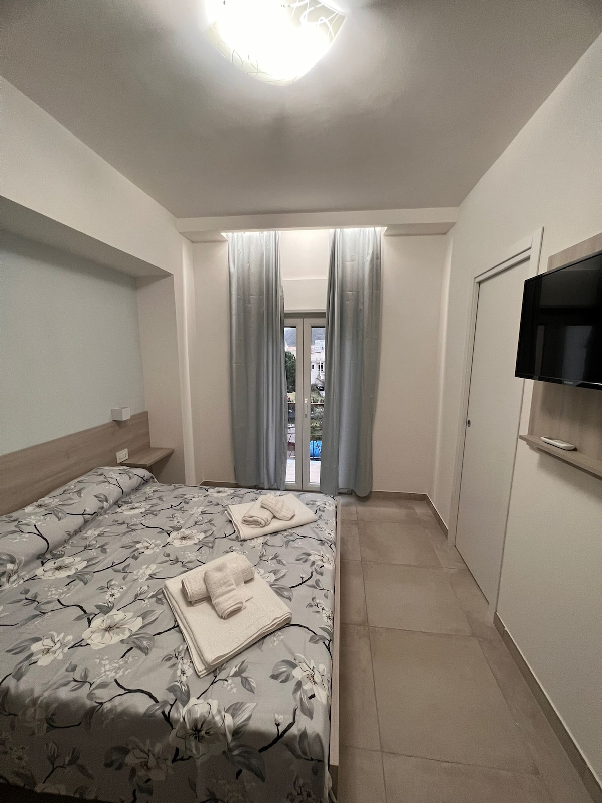 Ampia camera, dotata di ogni confort e di una piccola terrazza con una vista mozzafiato sulla città e sul mare. La camera è dotata di televisore, asciugamani, asciugacapelli, plaid, due cuscini ulteriori, kleenex, calzascarpe e levapelucchi. E' dotata di una terrazza che si affaccia sull'intera cittadina, perfetta per gustare un buon bicchiere di vino in compagnia.
