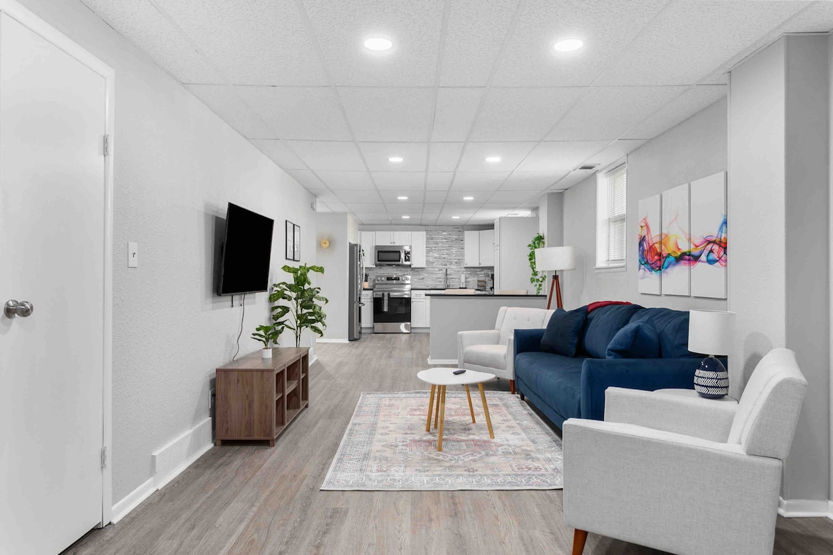 Enjoy a convenient 2BR in Riverside, just minutes from Downtown Kansas City. In-unit washer/dryer and easy, stair-free access make this a great choice for families, longer stays, or guests with luggage. You’ll have free parking, fast WiFi, easy self check-in, and a fully equipped kitchen. Quick highway access makes getting around simple, while the quiet setting offers a comfortable place to relax after a long day.