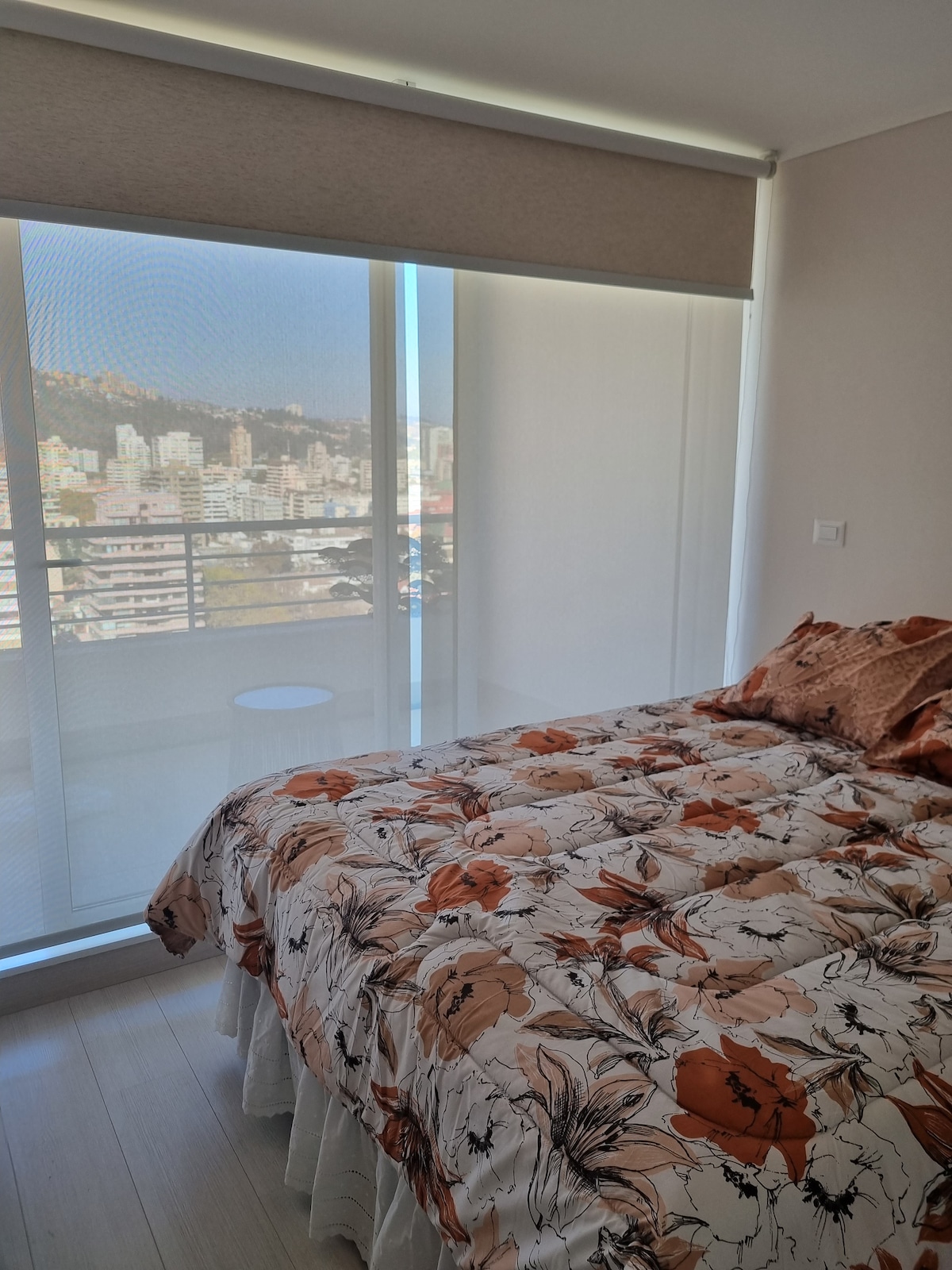 🤩COMFORTABLE AND NEW🤩 Apartment by the beach, 17 floor 🅿️Free Parking ✅Pool additional payment, 1 courtesy income 🏋🏻Gym 💨Sauna additional payment 😉Beautiful view of the city of Viña ✅It has heating and everything necessary for a comfortable stay 🔔Access by electronic lock 🚨No visits can be received ‼️All guests must register your ID to enter 🚭Prohibited smoking 📦We receive your online purchases