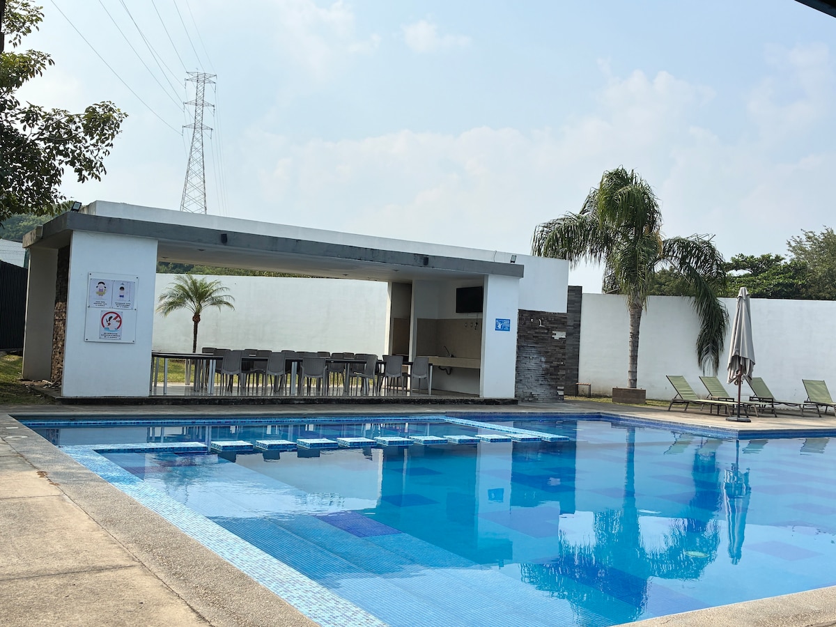 Departamento en planta baja, vista al jardín, alberca y río. Descansa a la orilla de un río y respira el aire puro rodeado de naturaleza. Relájate en la alberca con tu familia y/o amigos disfrutando del sol y el cálido ambiente familiar. Un espacio muy ecológico a poca distancia de centros de ínteres.